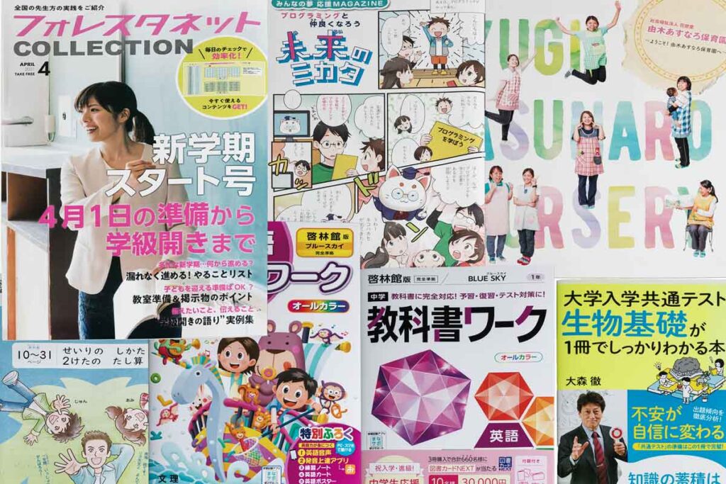 半世紀近くにわたり学参編集のプロとして、教材の企画から校了まで一貫した制作管理のもと、高品質の教材を提供。近年では、デジタル教材も多数制作。主要5教科はもちろん、実技教科も含め、幼児・小中高・一般まで幅広くトータルコーディネート。社内外に多数のスタッフを有し大型プロジェクトにも対応。社員には教員経験者も多数在籍。現場の知見を活かした教材作りや企画提案、国や自治体案件の実績も当社の強みのひとつ。